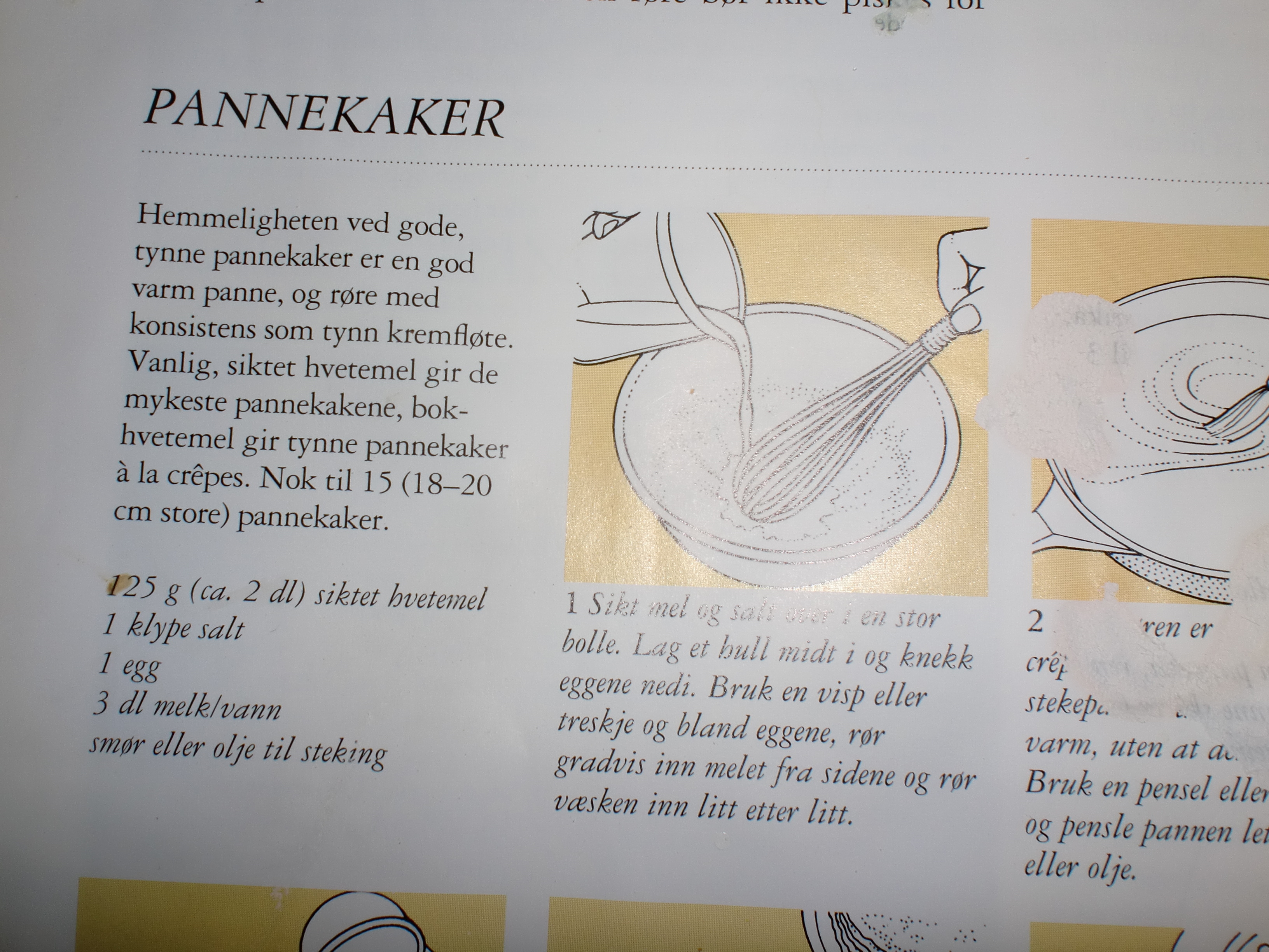 Dette blir et bonusinnlegg, i og med at dette dreier seg om en oppskrift jeg har brukt mange ganger. En av favorittene jeg tyr til er «pannekaker» fra Josceline Dimblebys «Mesterkokkens internasjonale kokebok», utgitt i 1995 på det nå nedlagte Ex Libris forlag.