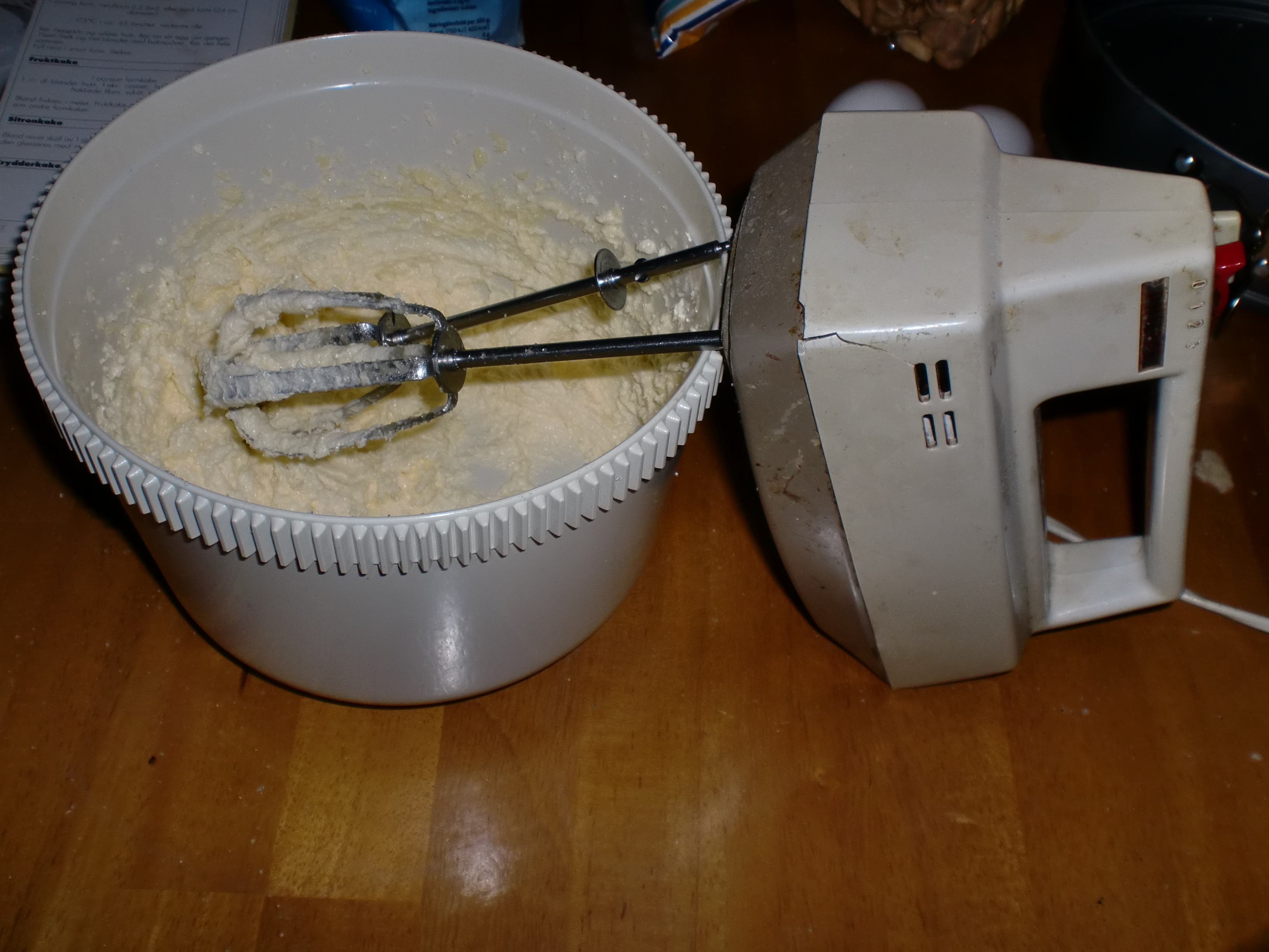 Bruk aldri visp til å blande mel inn i en kakerøre. Det gir seig kake. Bland sammen med lett hånd. Bruk slikkepott eller sleiv.
