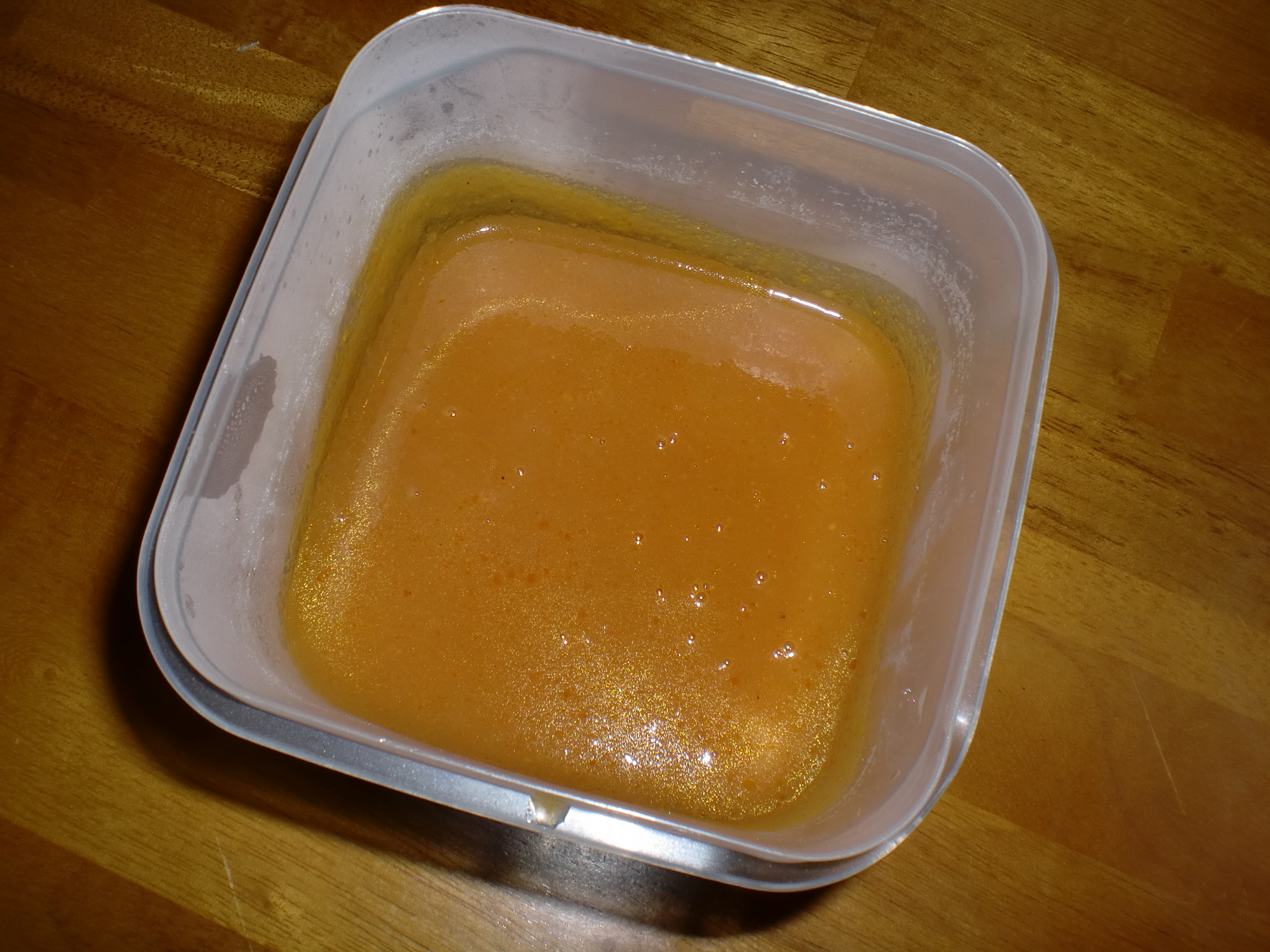 Unten å redusere varmen, så kan du tilsette paprikapulver, salt, chilipulver og matfarge. Obs, vær litt forsiktig med chilipulveret, om du ikke aner hva slags styrke det har.