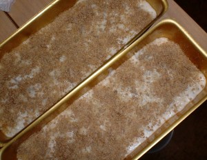 Som topping brukte jeg knust knekkebrød i mangel på noe bedre. Jeg puttet knekkebrødene i en plastpose og dæljet løs på de med en hammer, før jeg strødde de over fisken. Det blir overraskende bra, så bare prøv selv.