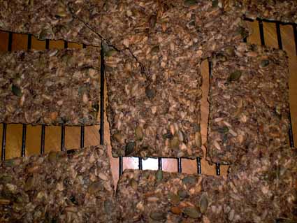 Sett ovnen på 180 grader og stek i 20 minutter. Ta ut knekkebrødene og skjær de i passende ruter. Stek videre i 15-30 minutter til. Sjekk med jevne mellomrom så knekkebrødene ikke blir brent. Hvis de har fin farge, men fortsatt er myke, så legg knekkebrødene på en rist og sett de inn i ovnen igjen på 100 graders varme. Stek videre i 15 minutter eller til de er helt tørre. De kan virke litt myke akkurat når de tar de ut av ovnen, men vil stivne rimelig fort.