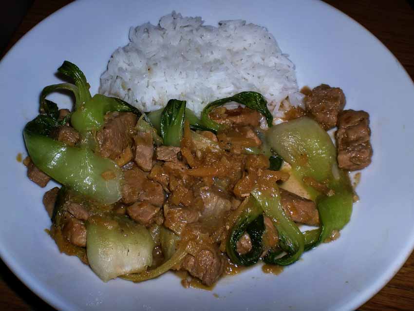 Brasert svin med purre og pak choy