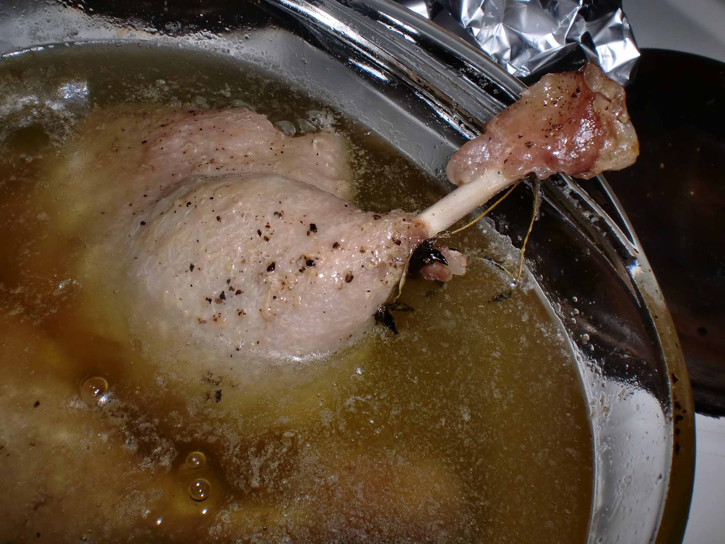 Jeg lagde to andelår med denne metoden. Jeg behøvde to glass med andefett for å klare å dekke andelårene under fettet. I og med at de skal konserveres, så er det viktig at ikke noe stikker opp av fettet.