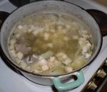 Legg i bønner, kjøtt, grønnsaker og kjørvel. La gryten trekke til bønnene er klare. Smak til med salt og pepper.