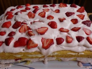 Marsipankake med vanilje- og jordbærkrem