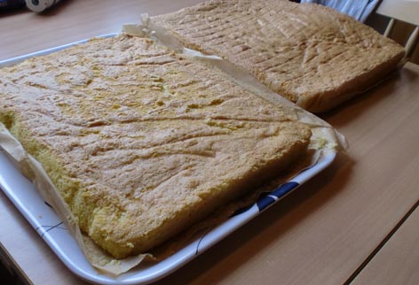 Jeg brukte forresten et serveringsbrett som kakefat. Det ble akkurat stort nok.