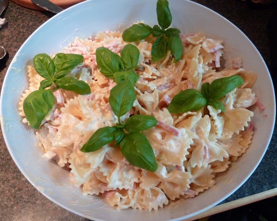 Pastasalat er kjekt å ha med seg når man skal bidra til et koldtbord.