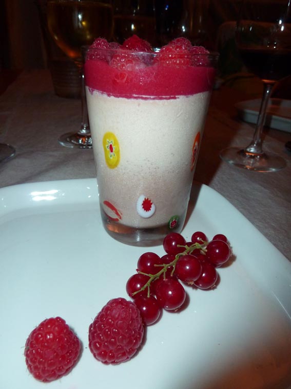 Lag en puré av bringebærene, bruk gjerne stavmikseren. Gni mosen med en skje gjennom en sil, sånn at du får fjernet de bitre steinene. Smak til med melis. Serveres til panna cottaen.
