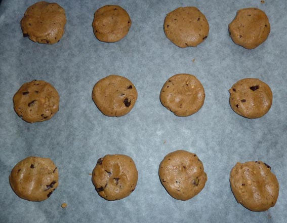 Trill kuler av deigen og sett dem på stekeplaten. Jeg anbefaler 12 kjeks på hvert stekebrett, fordi at kjeksene vil flyte litt utover når de stekes.