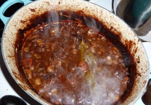 Meningen var å bruke Julia Childs oppskrift denne gangen, men jeg fant den for omstendelig og litt gammeldags. Jeg har, med god hjelp på Twitter fra kokken Mats (takk!), piffet den opp med rosiner og stjerneanis. De søte, deilige rosinene gjorde virkelig susen. Neste gang tror jeg jammen at jeg slenger i en kanelstang og noen nellikspikere også.