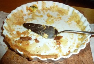 Denne paien ble til da jeg skulle gjøre mitt første forsøk på å lage pai. Heldigvis var jeg så smart at jeg noterte det ned i den urgamle notatboken min for oppskrifter og kunne derfor enkelt rekonstruere herligheten. Får å komme fram til denne paien så googlet jeg ganske mange oppskrifter og satte sammen elementer som jeg syntes hørtes gode ut. Og godt ble det. Oj oj oj. Vi var to personer som klarte å tømme et helt paiform.