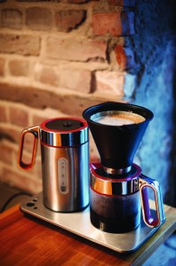 Den andre delen består av en kaffekolbe, som står under en filterholder med «flow-regulering». Ved å vri på denne reguleringen, kan du selv bestemme hvor sterk du vil ha kaffen.